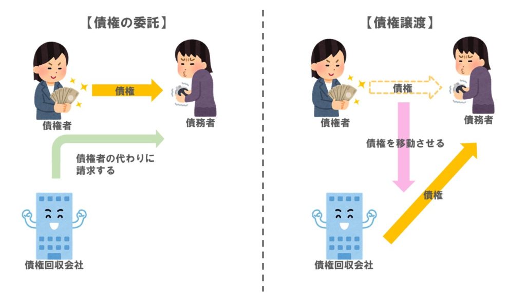 この場合、債権回収会社が、債権者にかわって債務者にお金を請求することになります。あくまで、本来の債権者に代わって債務者に請求するだけですので、債権者が債権回収会社に変わるわけではありません。