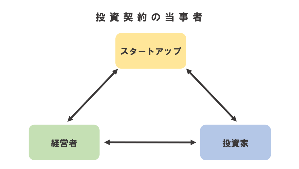 • 「投資契約」とは、投資に際して、投資家とスタートアップ企業やその経営者との間で締結される契約である