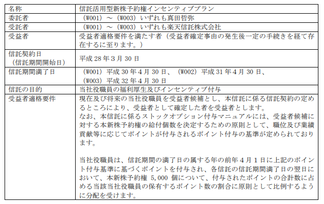 - 信託期間満了をもって、受託者が受益者に新株予約権を交付する
