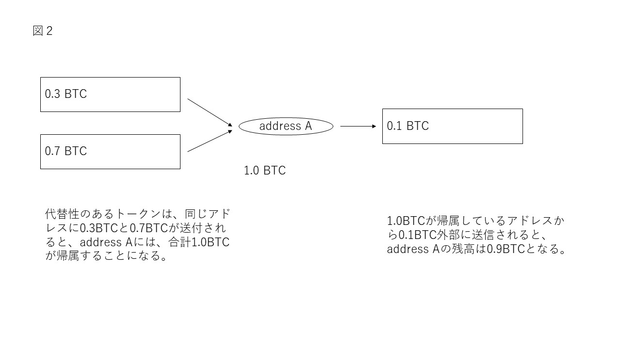 代替性がある、ない、というとイメージしにくいと思いますが、ビットコインは、同じ1ビットコインであればどのビットコインも同じものとして扱います。
